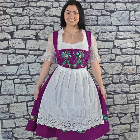 Beautiful plum Floral dirndl with colorful embroidery,