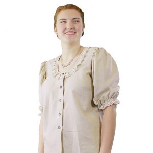 Introducing the Lia dirndl, in charming toffee and ivory, imported from Germany. This exquisite dirndl features a lovely, patterned fabric that exudes elegance. With front buttons and sheer apron, it offers a perfect fit and adds a touch of sophistication. Complete with a hidden pocket, the Lia dirndl is a must-have for those seeking truly enchanting traditional attire.