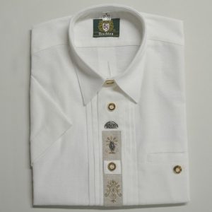 Men’s traditional styled red checkered German long sleeve shirt. Features edelweiss embroidery and roll-up sleeves.