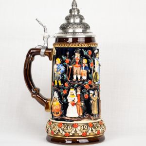 Men’s traditional styled blue checkered German short sleeve shirt. Features fir tree embroidery.