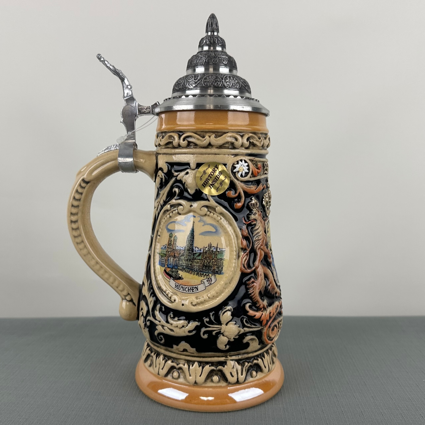 - Neuschwanstein and Munchen pictured on either side of the stein