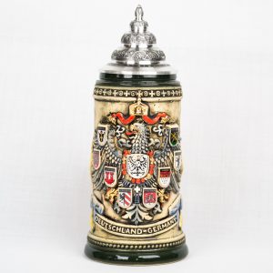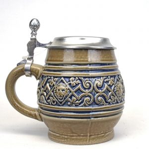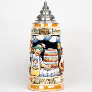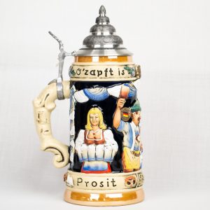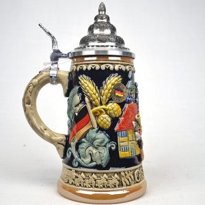 Hofbrauhaus ceramic beer mug with solid pewter lid.
