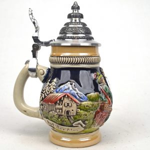 Hofbrauhaus ceramic beer mug with solid pewter lid.