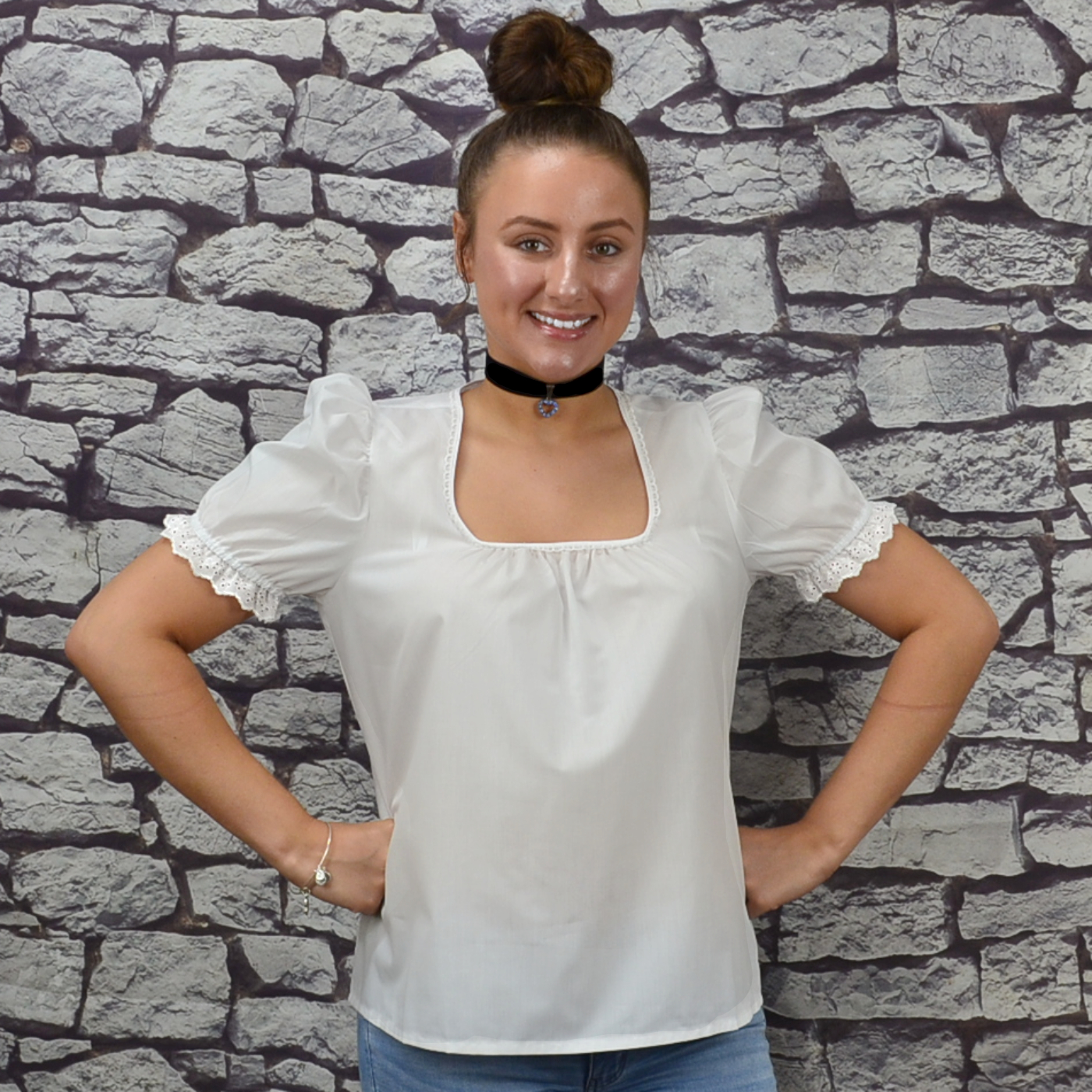Shipping Not IncludedSimple white blouse with lace detailing and puffed sleeves.