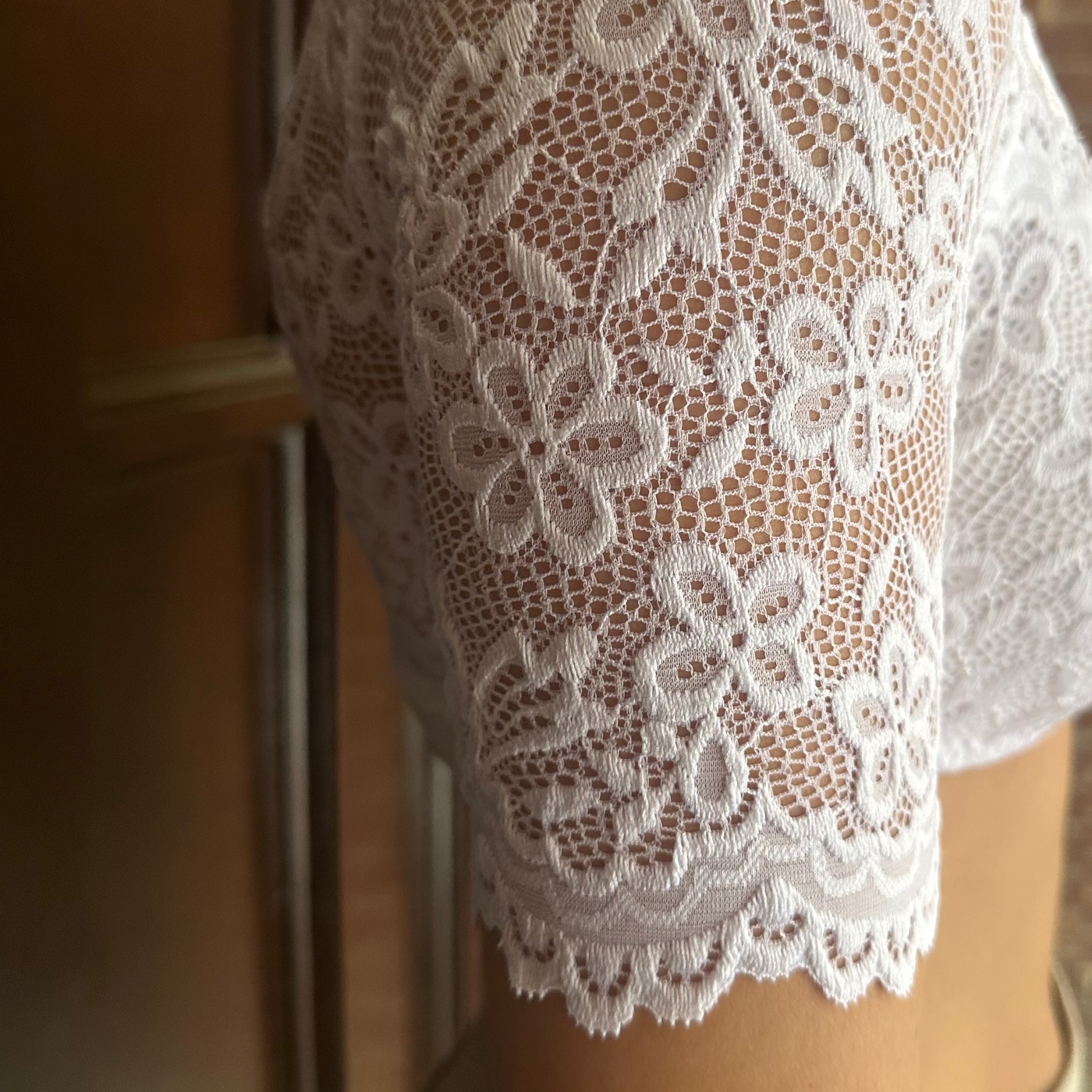 Shipping Not IncludedBertha short lace blouse with flower detailing is the perfect blouse to pair with any dirndl.
