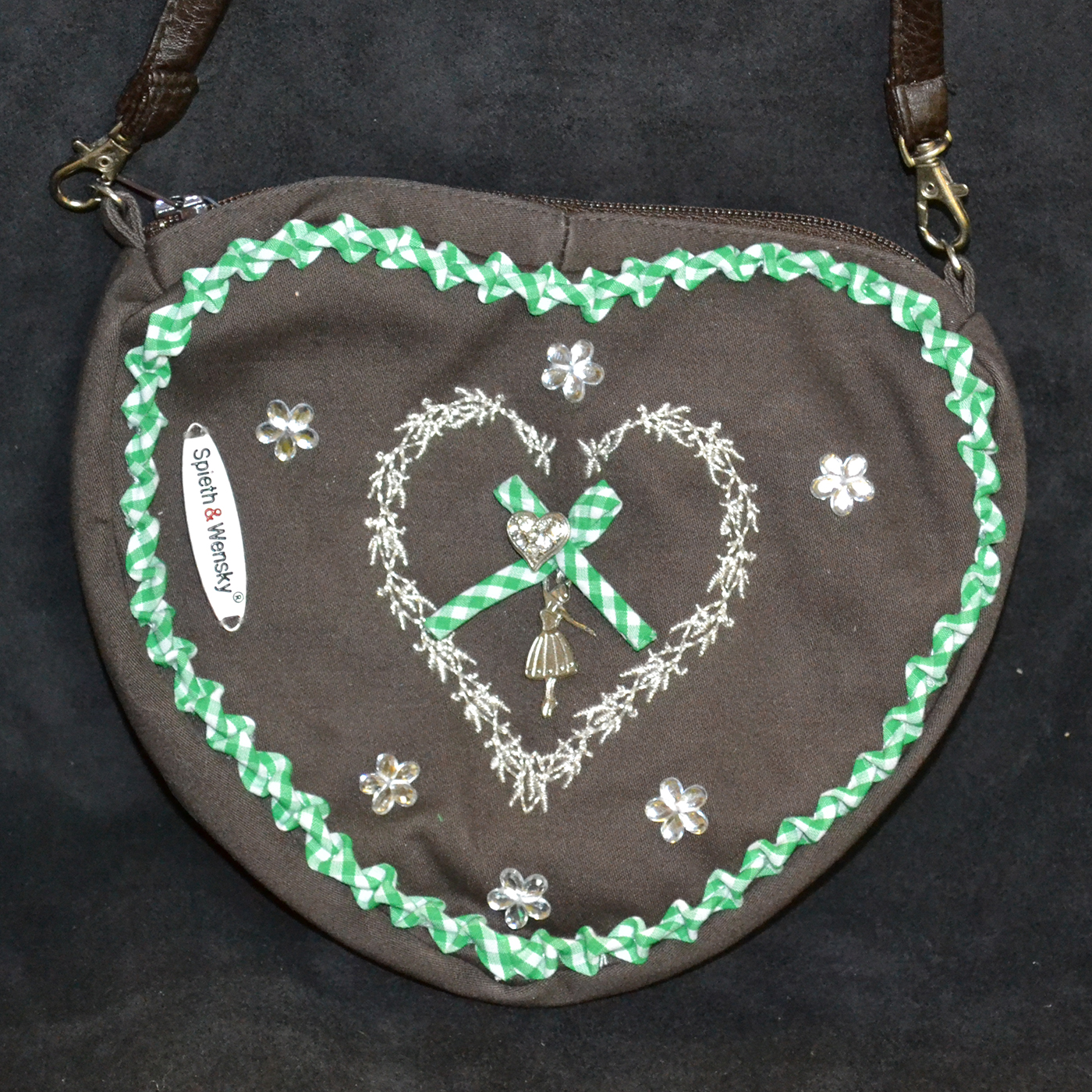 Tags: faux leather, felt, gingham, green, heart, imported, imported from germany, purse, Spieth and Wensky, trim