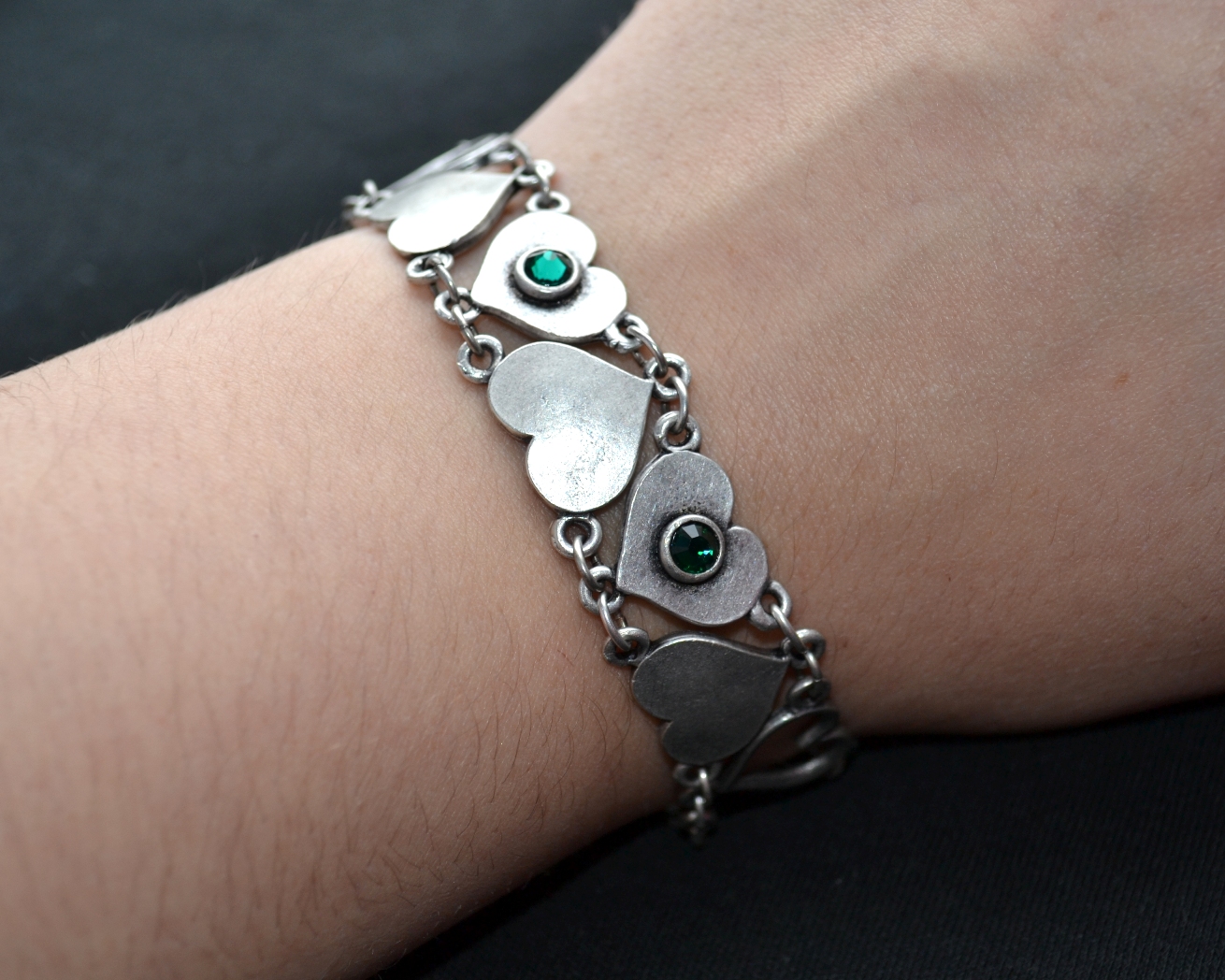 - Colored gemstones in the center of every other heart