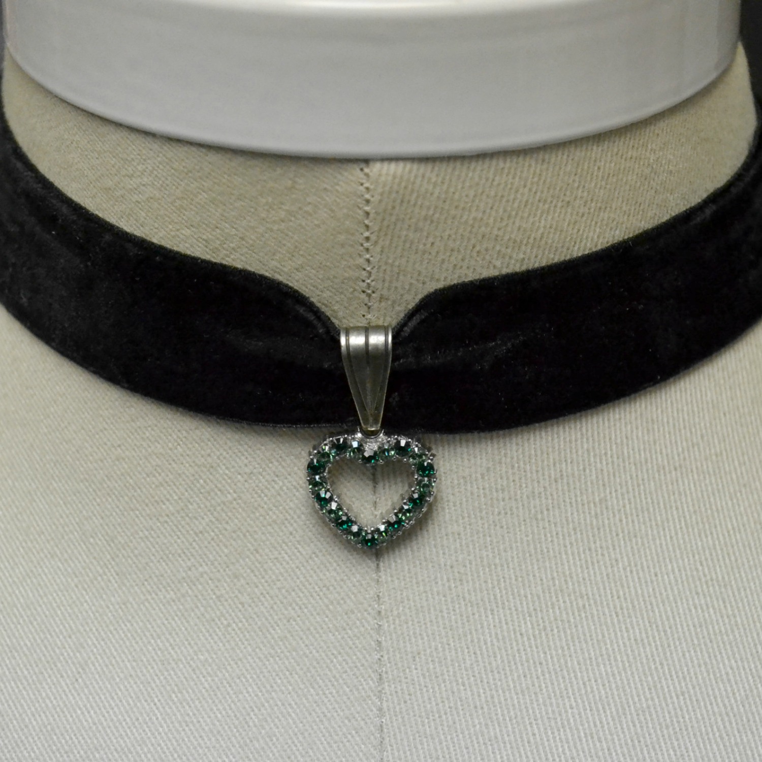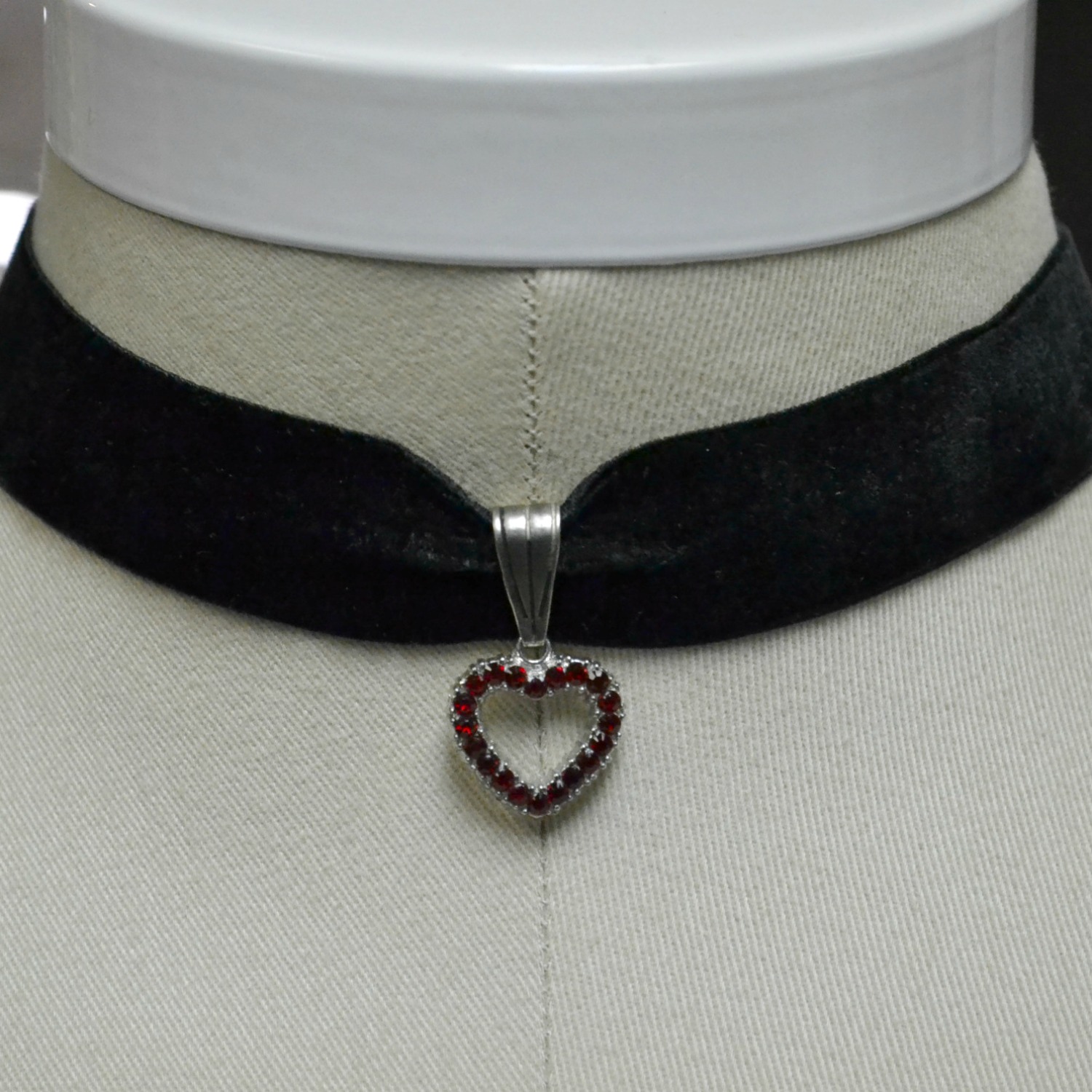 Crystal heart with velvet choker. Slightly elastic to give snug but not restrictive fit. 2 inch extender chain. Charm measures 3/4″ in length. Imported from Germany.