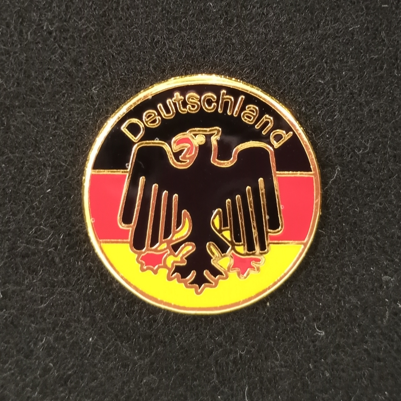 German colors with “Deutschland” and eagle. Imported. Measures 7/8″ in diameter.
