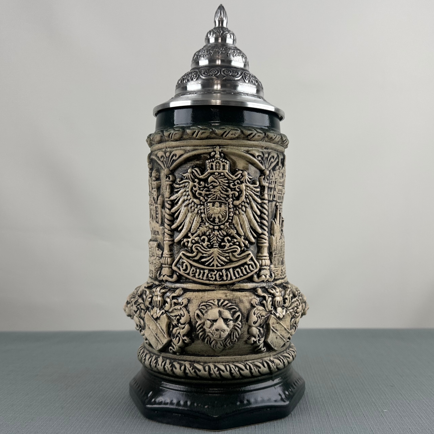 Tags: 3/4 Liter, 4/10 Liter, Beer Mug, Beer Stein, Berlin, Colorful Stein, deutschland, Eagle, ernst licht, frankfurt, German Beer Mug, German Beer Stein, hand painted, handmade, heidelberg, King Werk, koln, Limited Edition, lion, made in Germany, Neuschwanstein, octagon, Rustic, stein