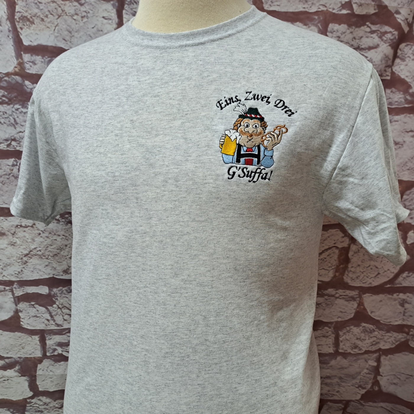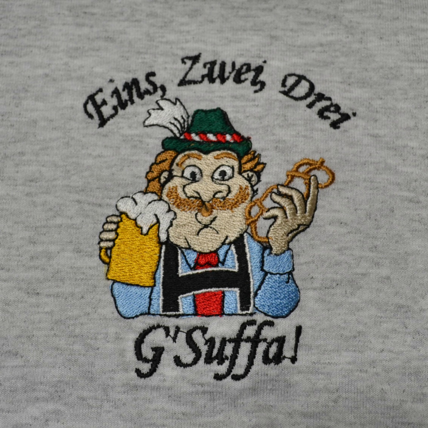 Shipping Not IncludedEmbroidered G’Suffa Man with beer and pretzel design. Embroidery by Ernst Licht.