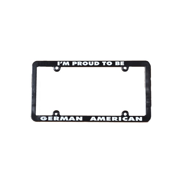 - “I’m proud to be German American” license plate frame.