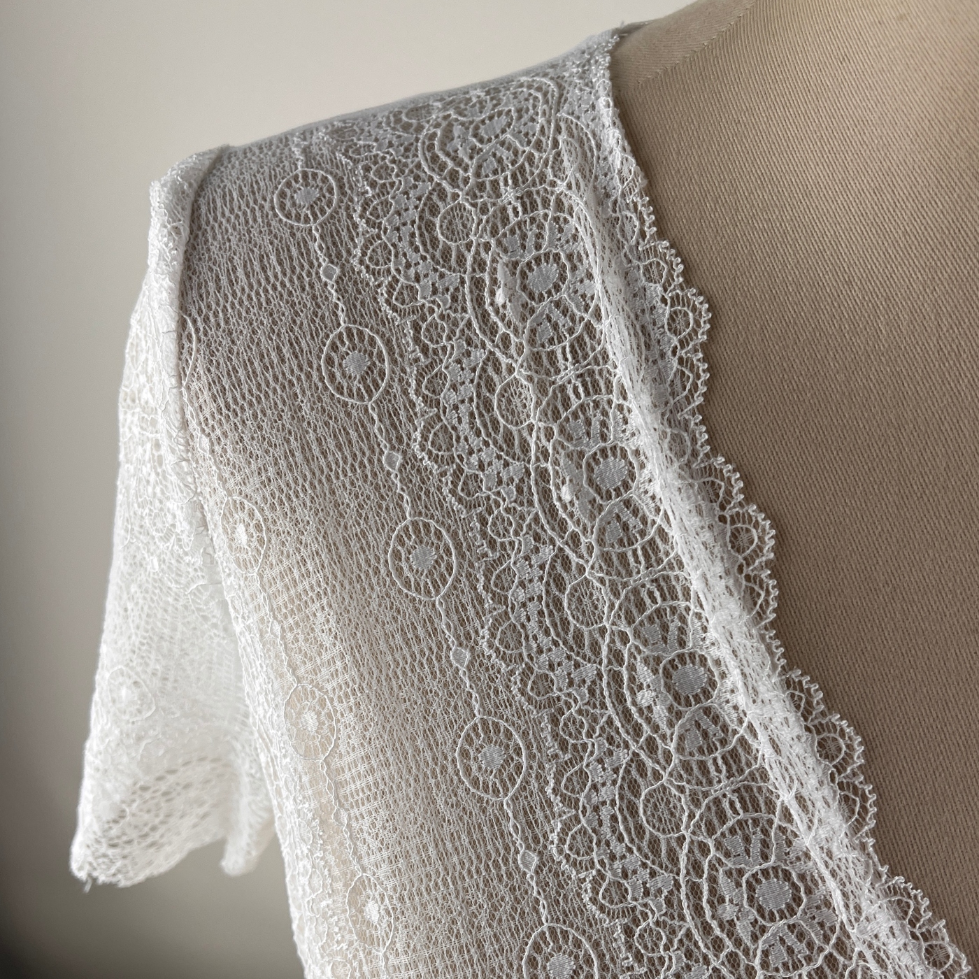 Shipping Not IncludedA German imported sheer lace v-neck blouse. Perfect for wearing under a dirndl. Back is white mesh.