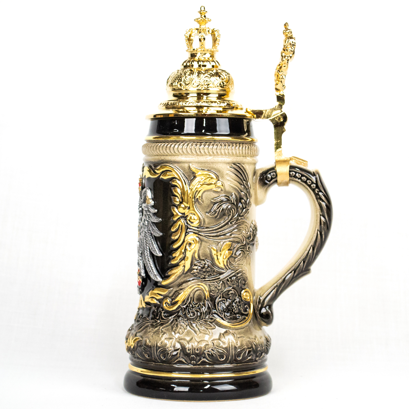 Gold Crown lid Coat of Arms Stein 1/2 liter