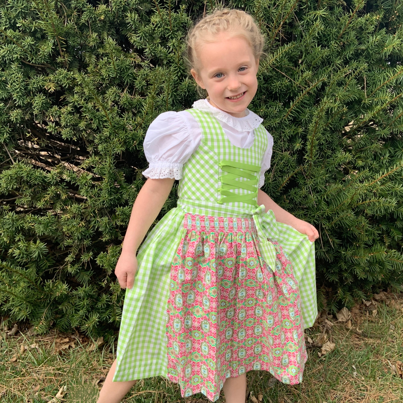 Green Checkered Dirndl with Multi Apron Youth, SIZES 2, 3 & 4