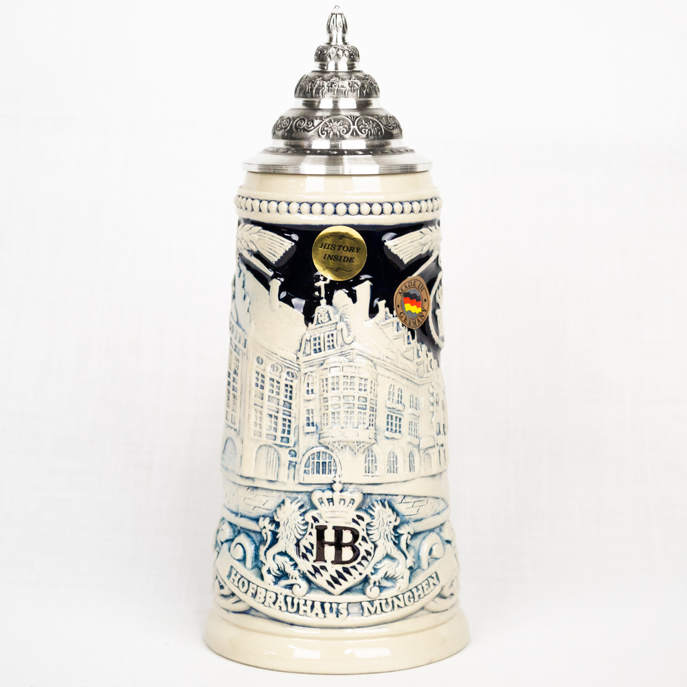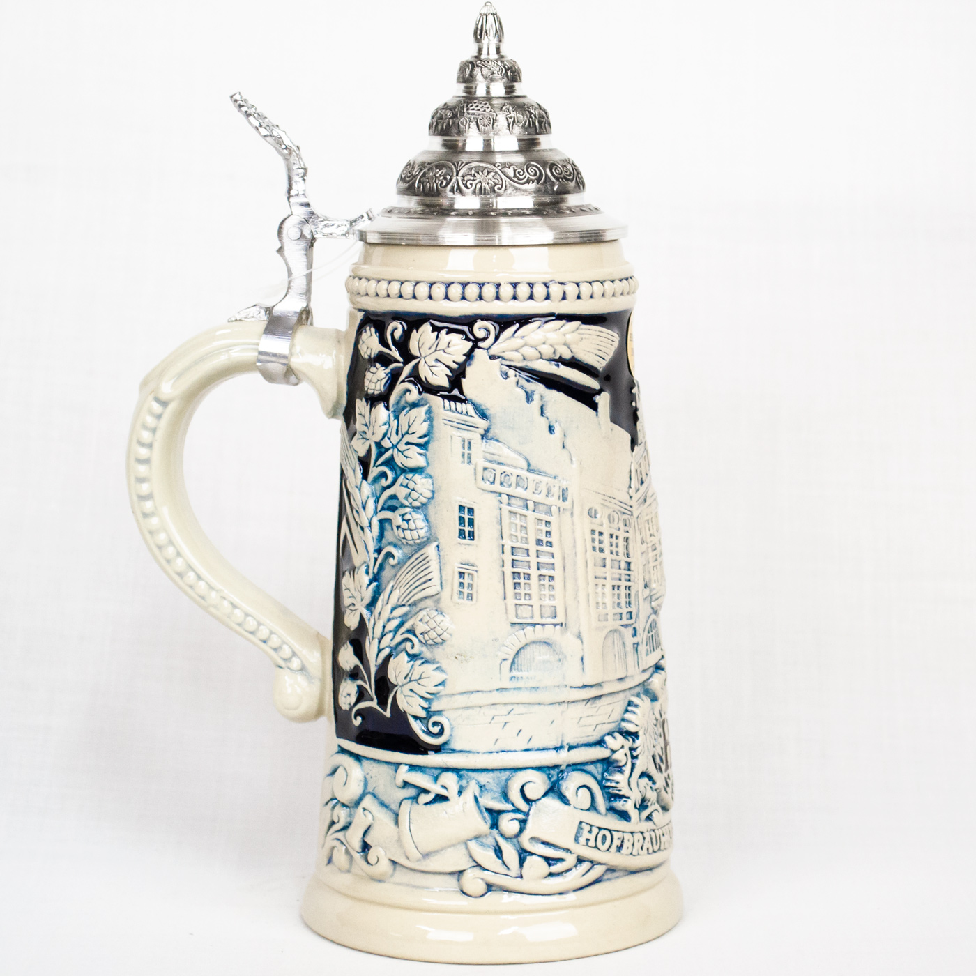 Shipping Not IncludedHofbrauhaus relief beer stein with a solid pewter lid.