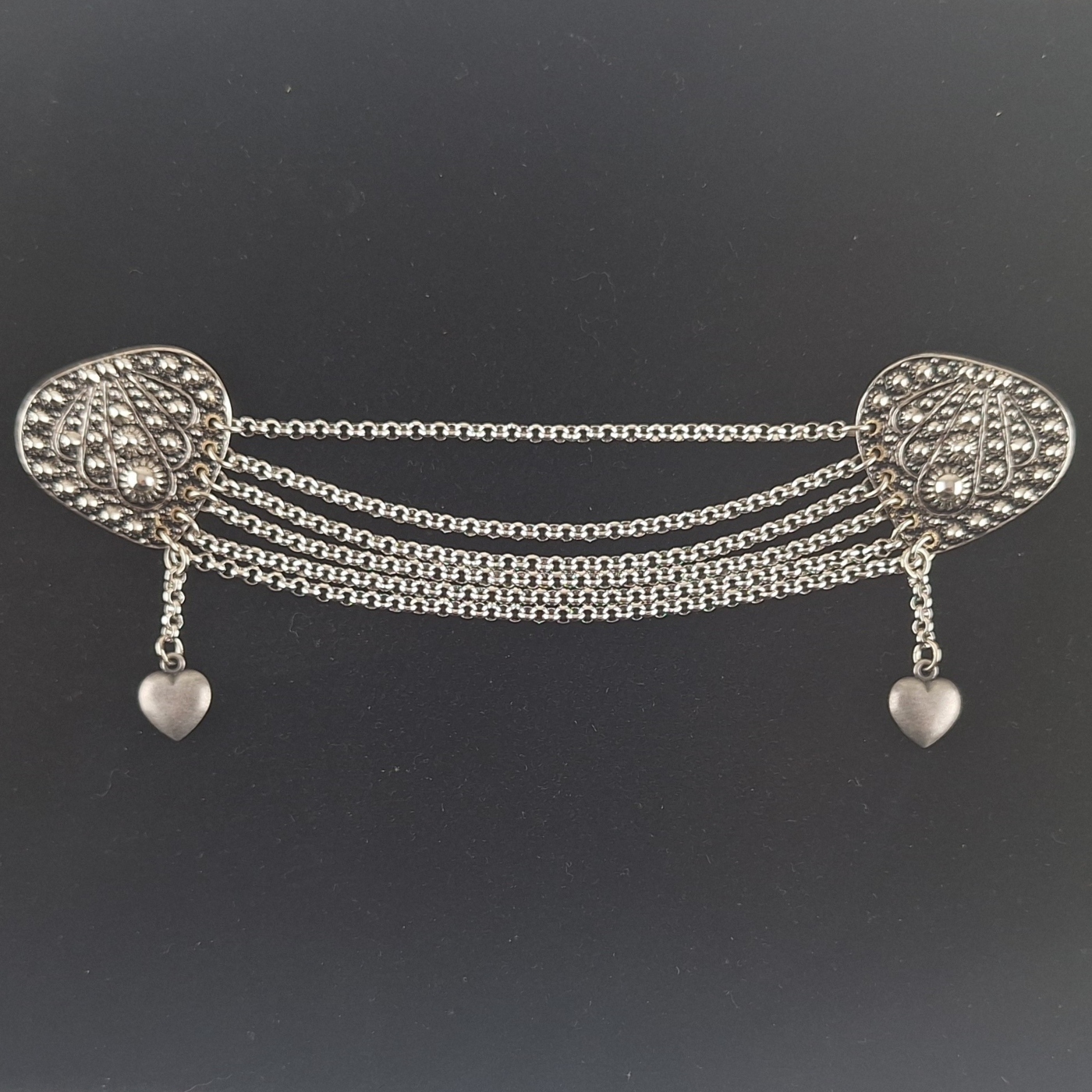 Shipping Not IncludedHeart charivari with 6 chains and heart charms hanging from the pins.