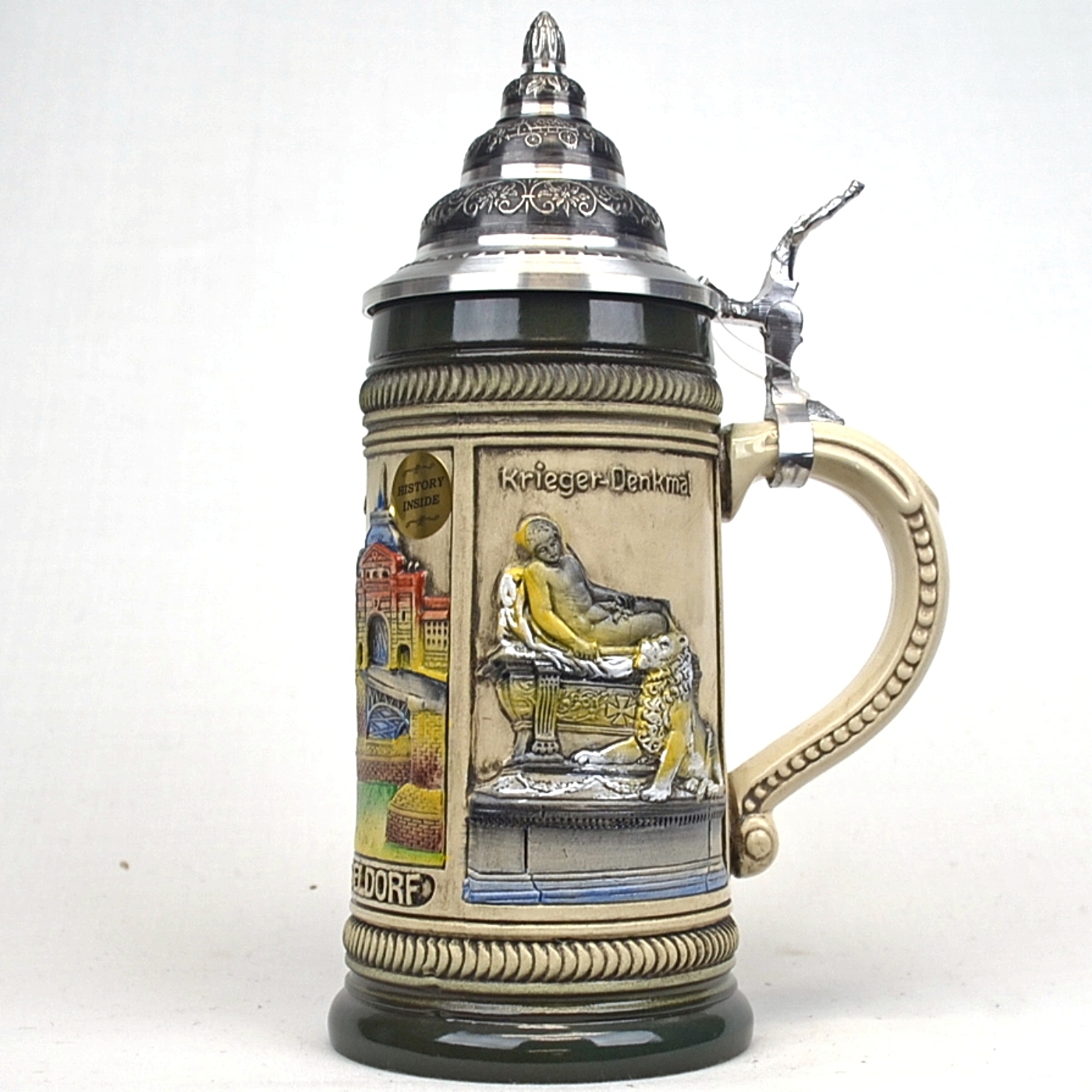 Shipping Not Included1/2 liter beer stein with three scenes of historic Dusseldorf sites.
