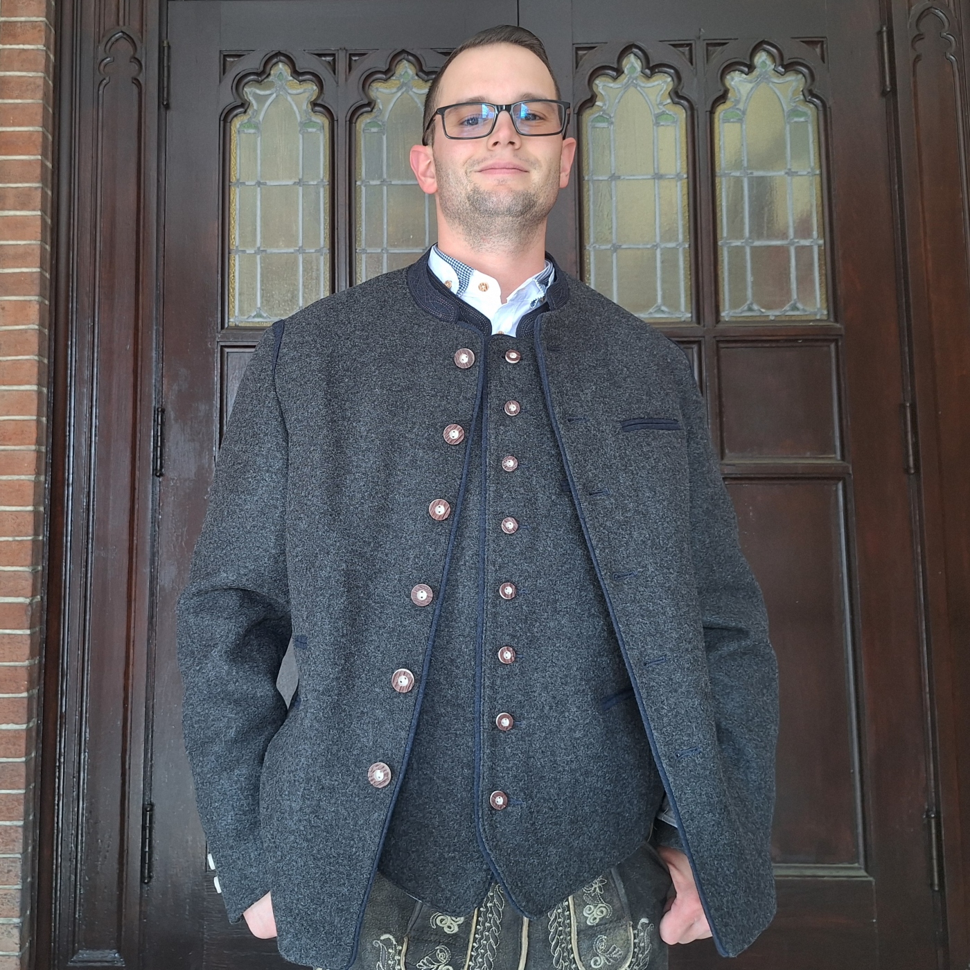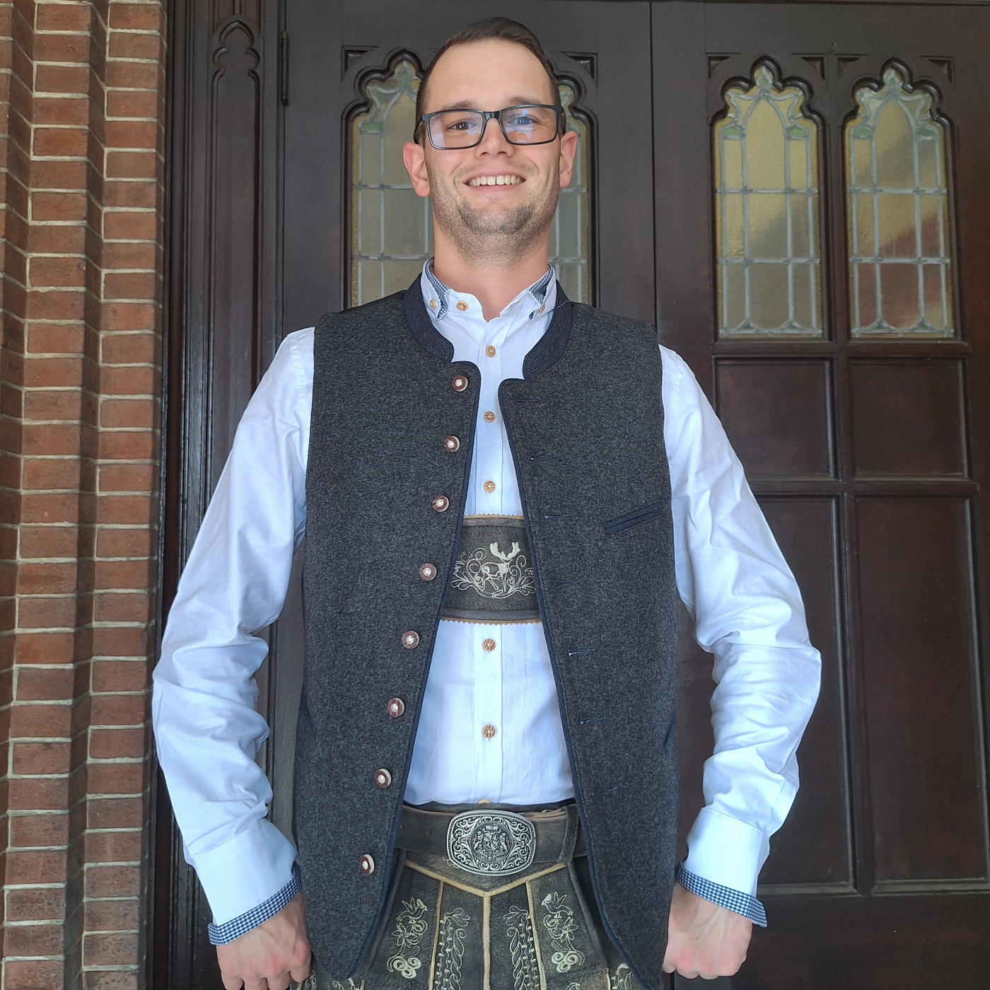 Shirt, jacket, lederhosen and suspenders sold separately