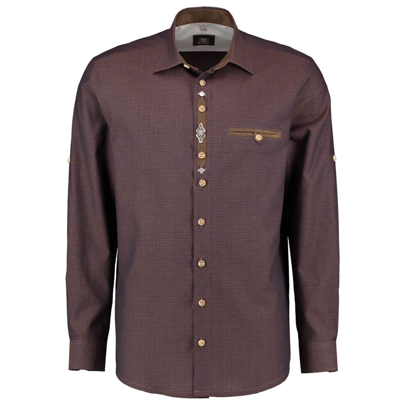 This men’s unique brown/blue shirt would look great paired with lederhosen, khakis or jeans.