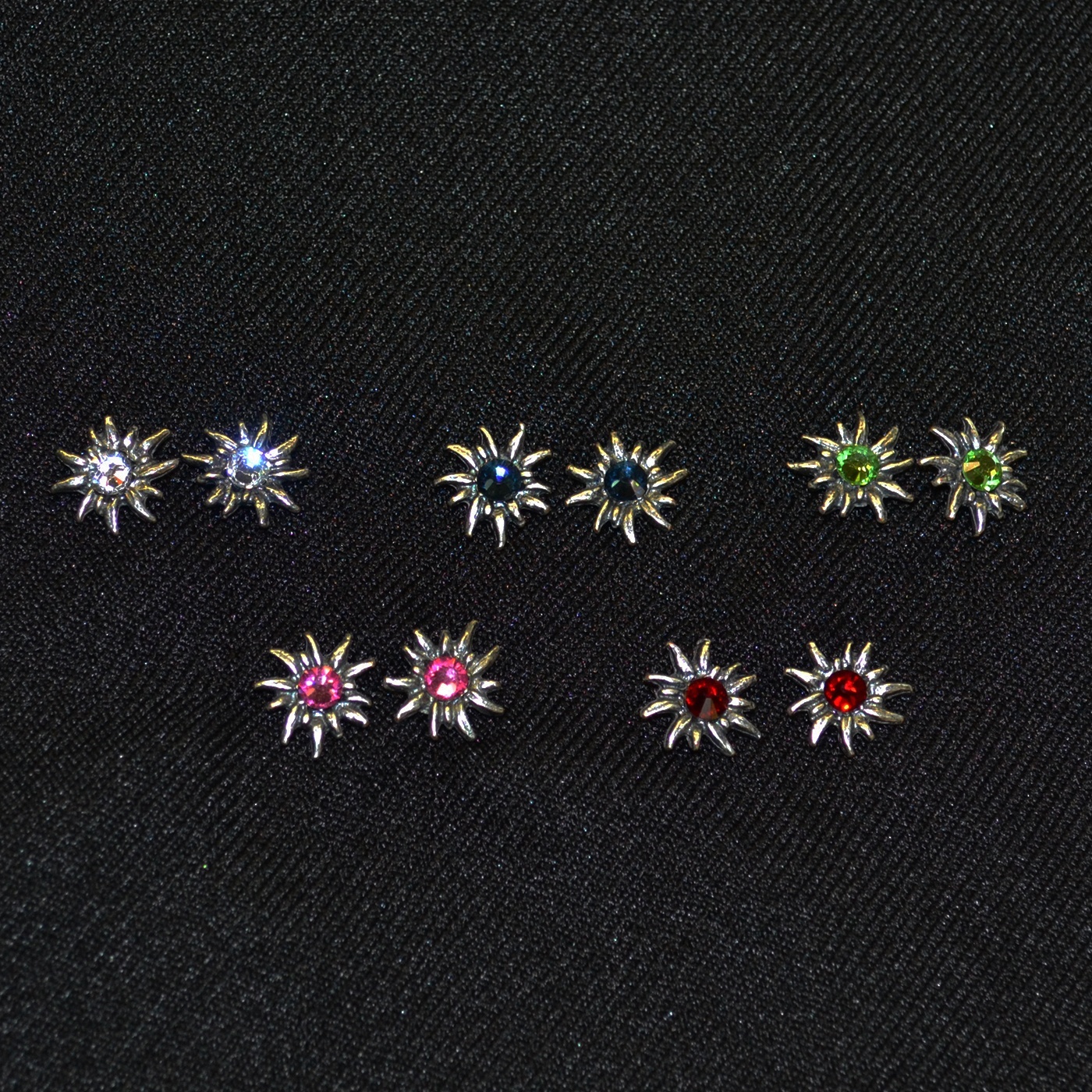Colorful gemstone edelweiss earrings on post backing.