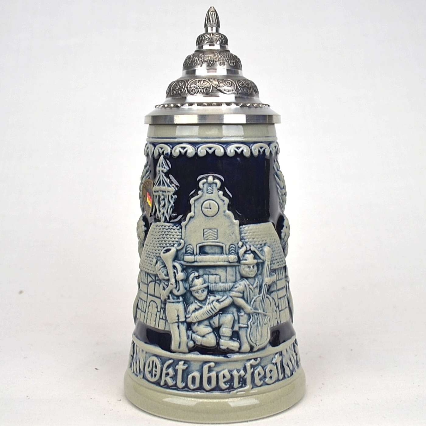Shipping Not IncludedAn Oktoberfest beer stein with pewter thumb lift.