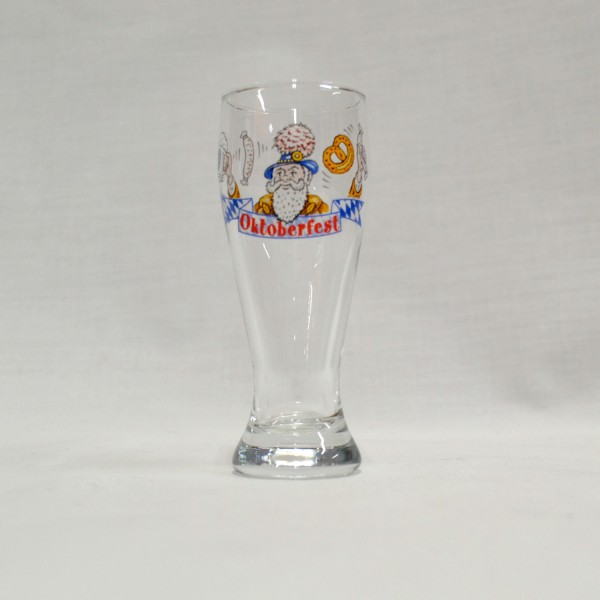 - Decorative Oktoberfest Shot glass with an old man holding beer with pretzels and Bratwurst. Holds 3 oz. of liquid. Measures 4″ tall.