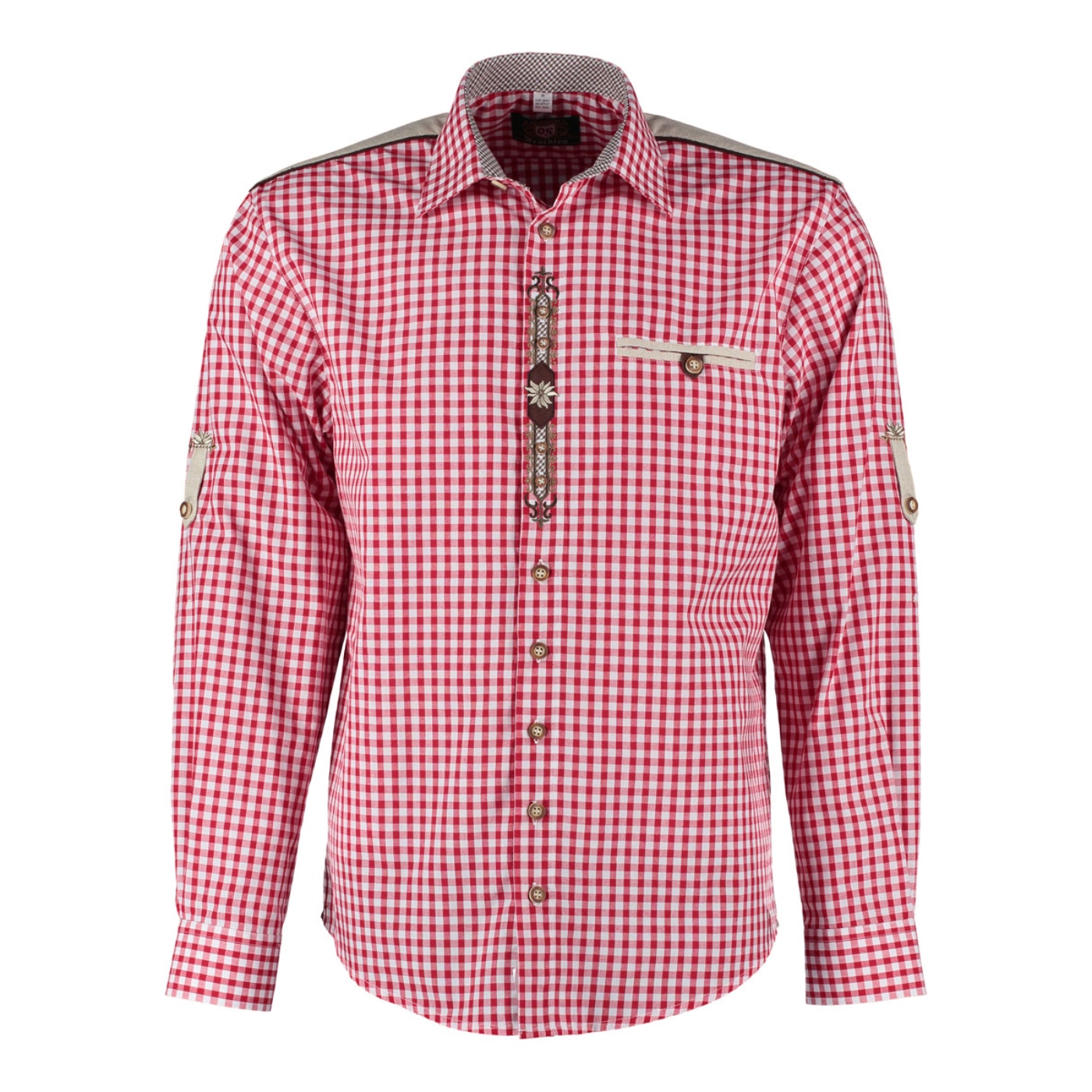 - Red checks with edelweiss embroidery