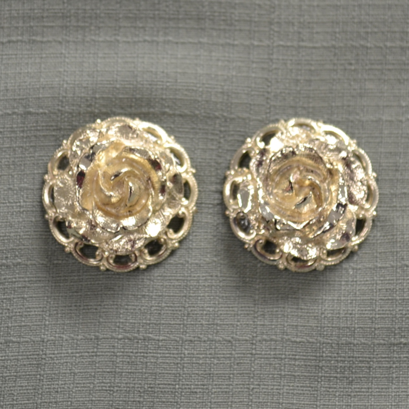 Silver plated rose earrings. Features post backing. Imported from Germany.