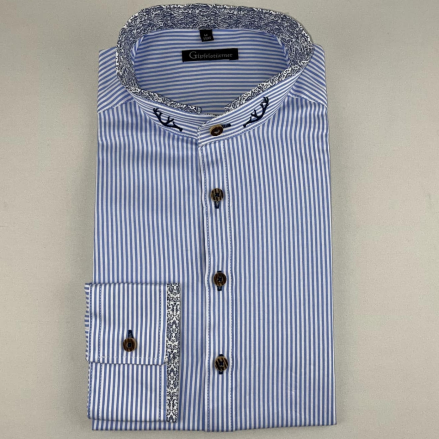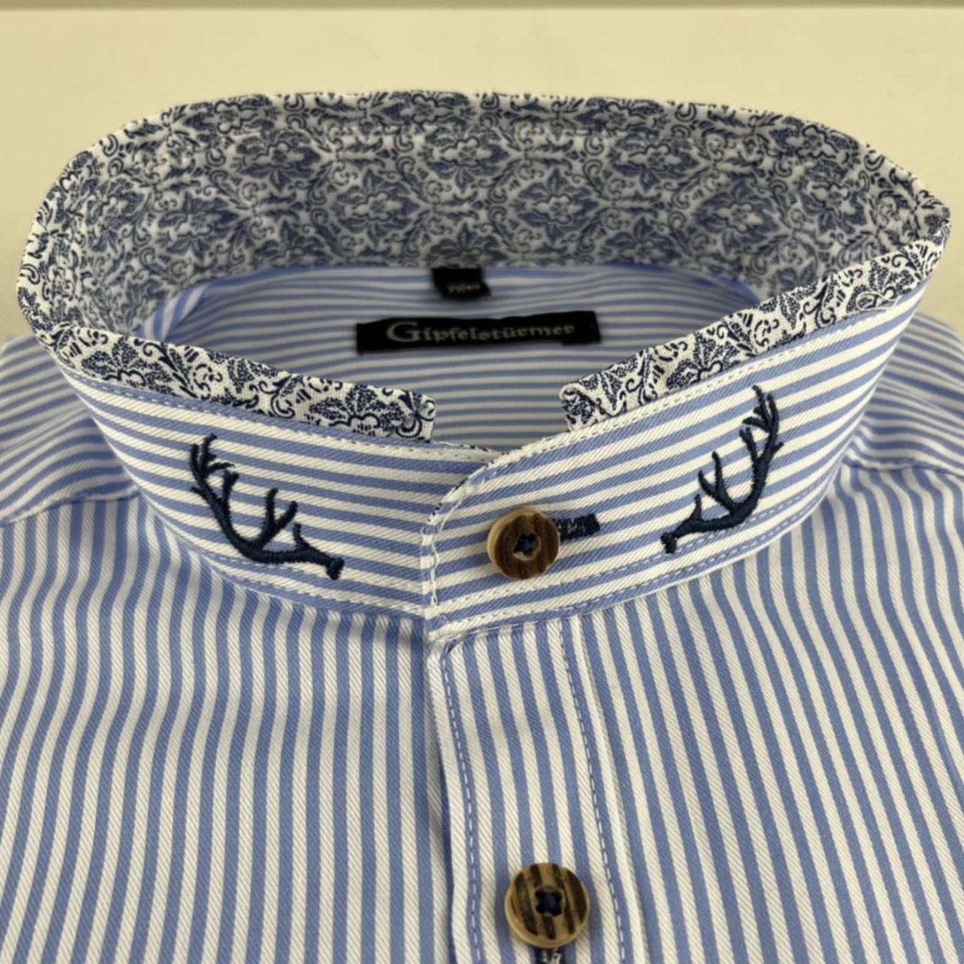 Shipping Not IncludedOS Trachten men’s blue striped long sleeve shirt features a rounded collar.