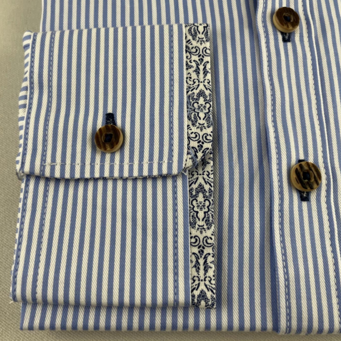 Slim Fit Blue Stripe Long Sleeve Shirt with Rounded Collar