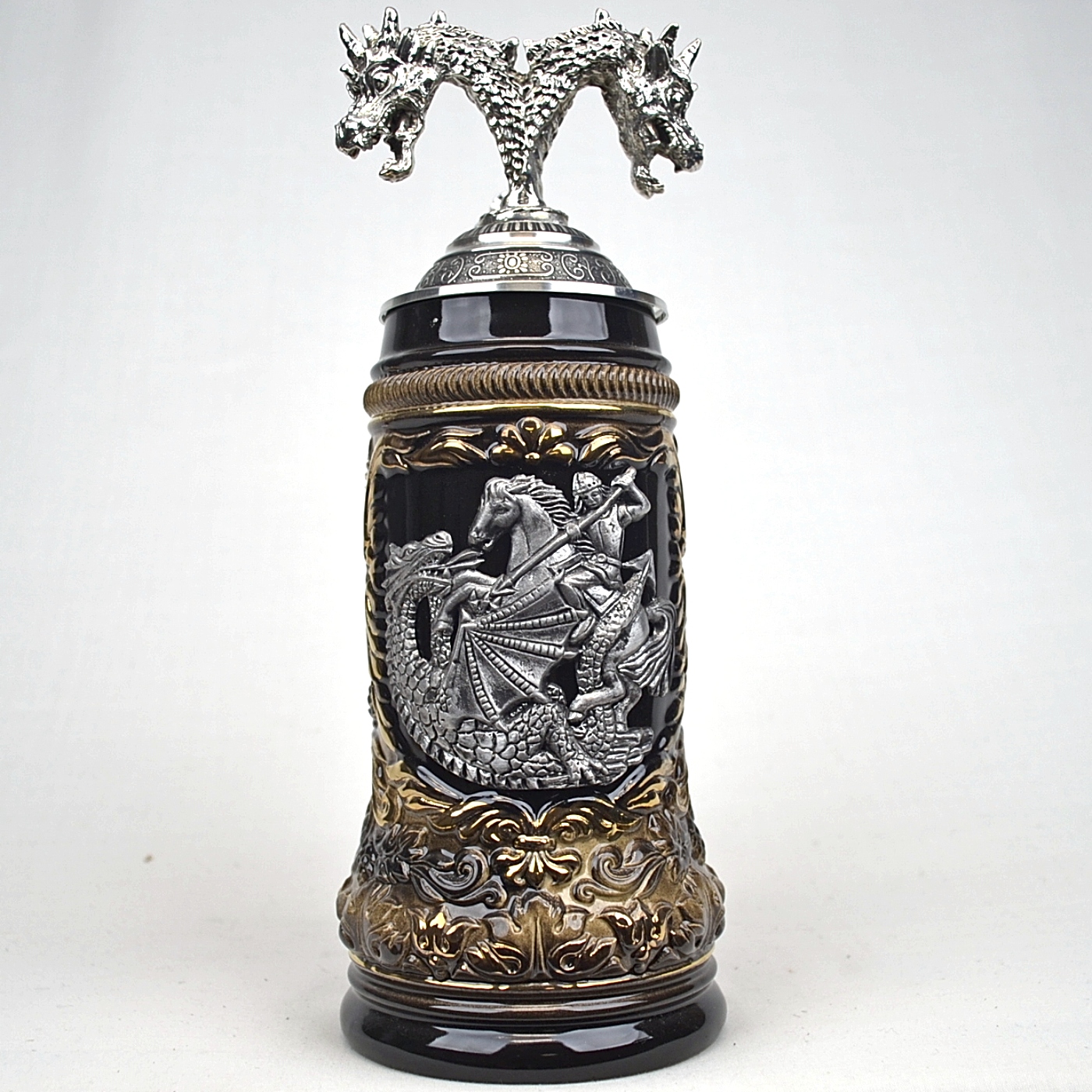 Shipping Not IncludedBlack and grey stein with St. George battling the dragon on the front.