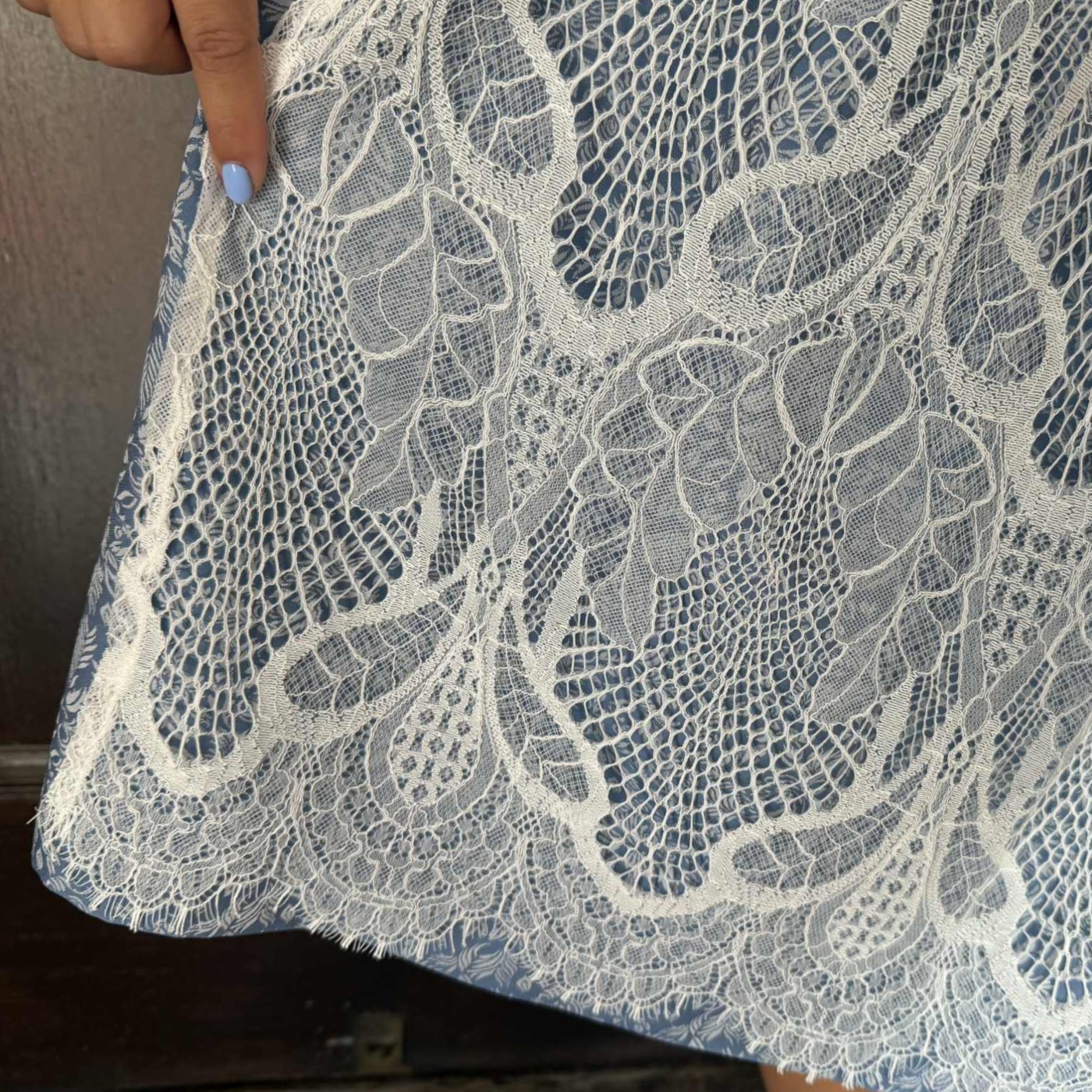 - Dusty blue dirndl with cord edge along the necklineÂ