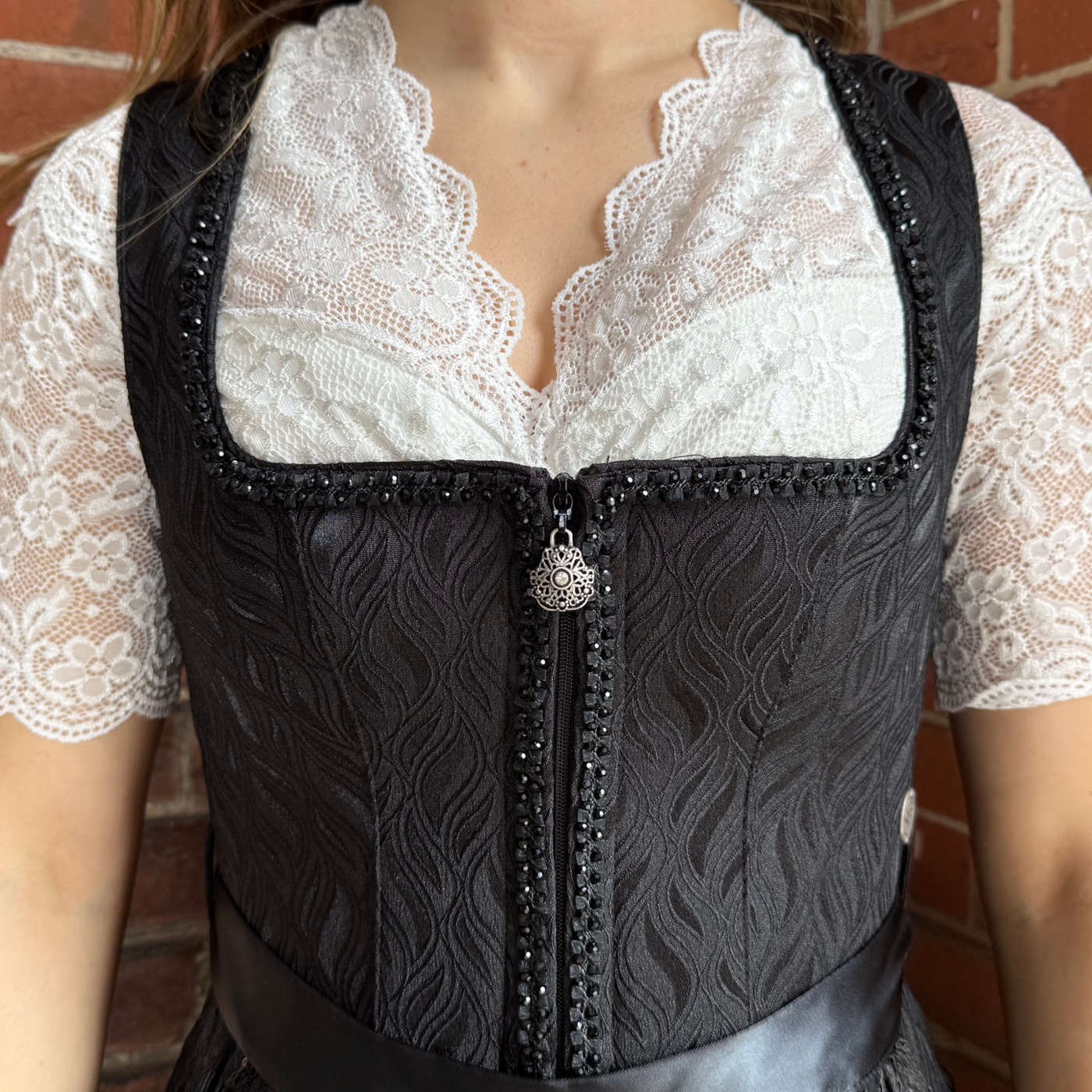 Embrace a sense of enchantment with the Nora Dirndl. Its adorned with a sparkling beads that transports you to a world of beauty and grace. The matching lace apron adds a touch of feminine allure.