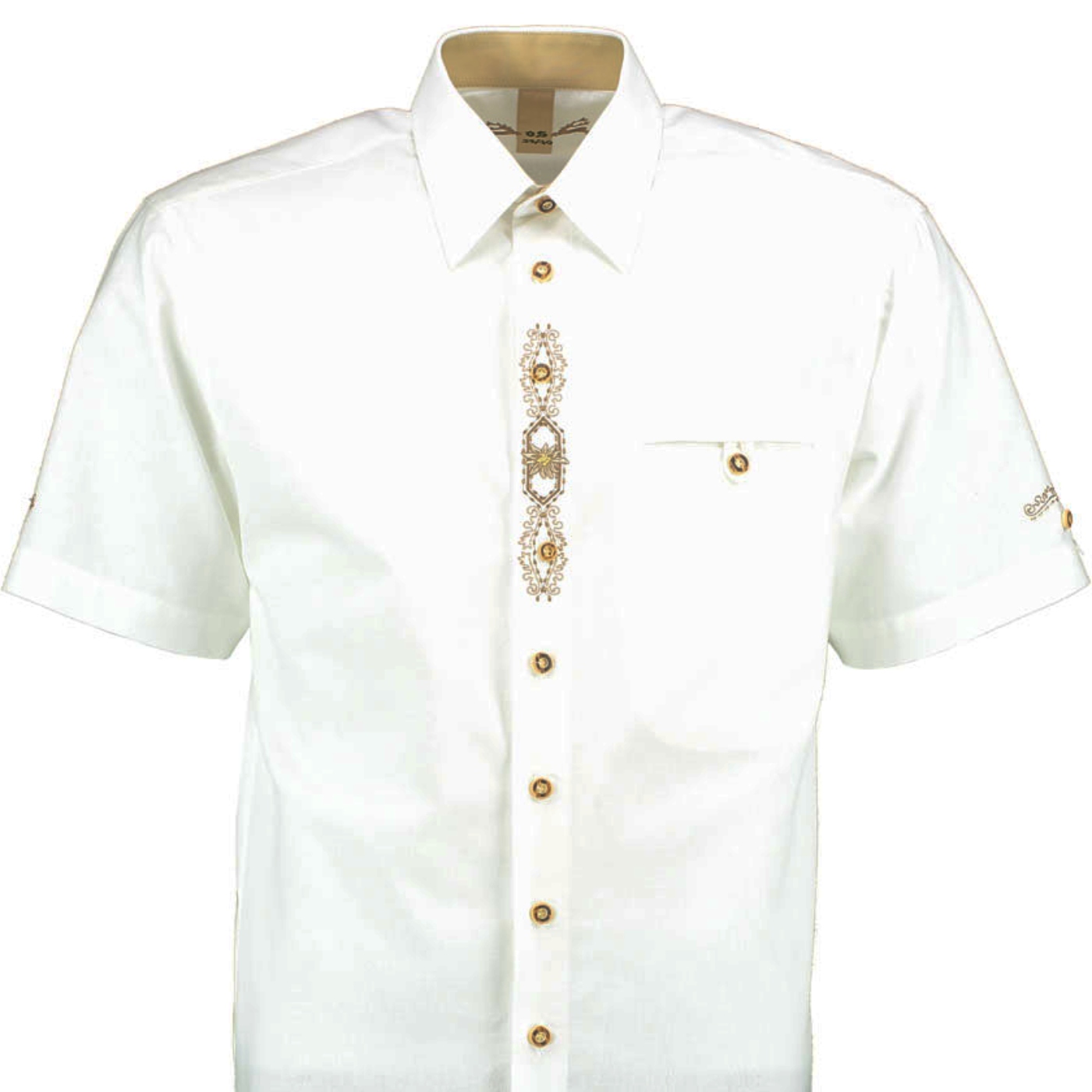 Shipping Not IncludedOS Trachten men’s short sleeve shirt features brown edelweiss embroidery.
