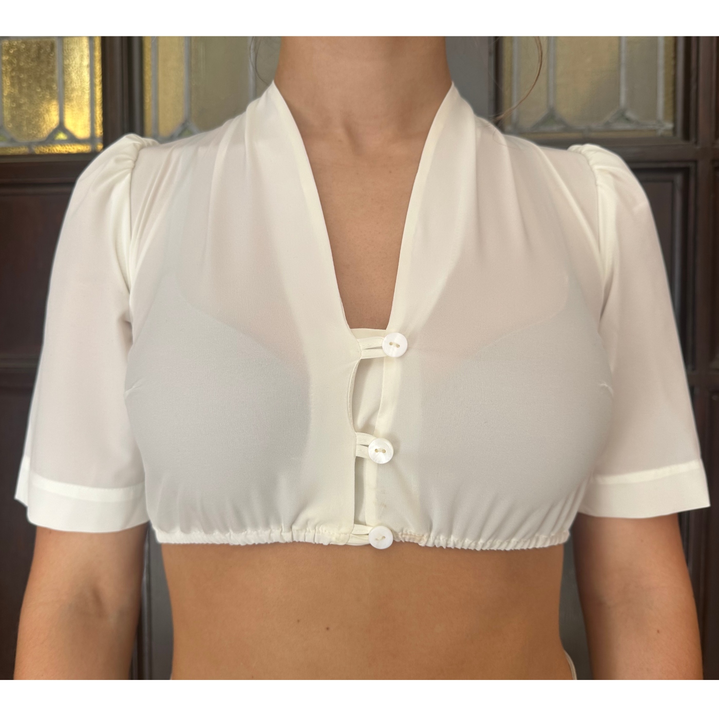 Shipping Not IncludedWilma Short cream blouse has a V-neck cut, 3/4 sleeves, and can pair nicely with any dirndl.