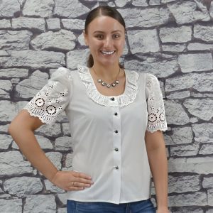 A German imported sheer lace blouse. Perfect for wearing under a dirndl.
